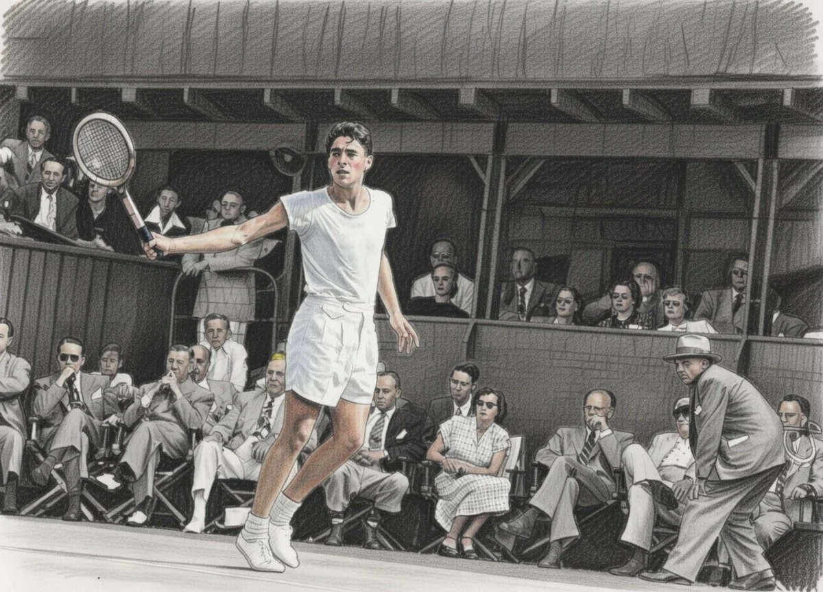 In the summer of 1948, a tall, fiery 20-year-old from the barrios of East Los Angeles stepped onto the grass courts of Forest Hills and stunned the tennis establishment. Richard Alonzo “Pancho” Gonzales, the son of Mexican immigrants, defeated the heavily favored Eric Sturgess in the final of the U.S. National Championships (now the US Open) to win his first major title. The following year he defended his crown. Gonzales wasn’t just winning matches—he was breaking through the invisible color line of American tennis, becoming the first Mexican-American superstar in a sport long reserved for the white, wealthy elite. His rise marked a cultural turning point, helping shift tennis from an exclusive country-club pastime into a more accessible, diverse, and passionate American spectacle.